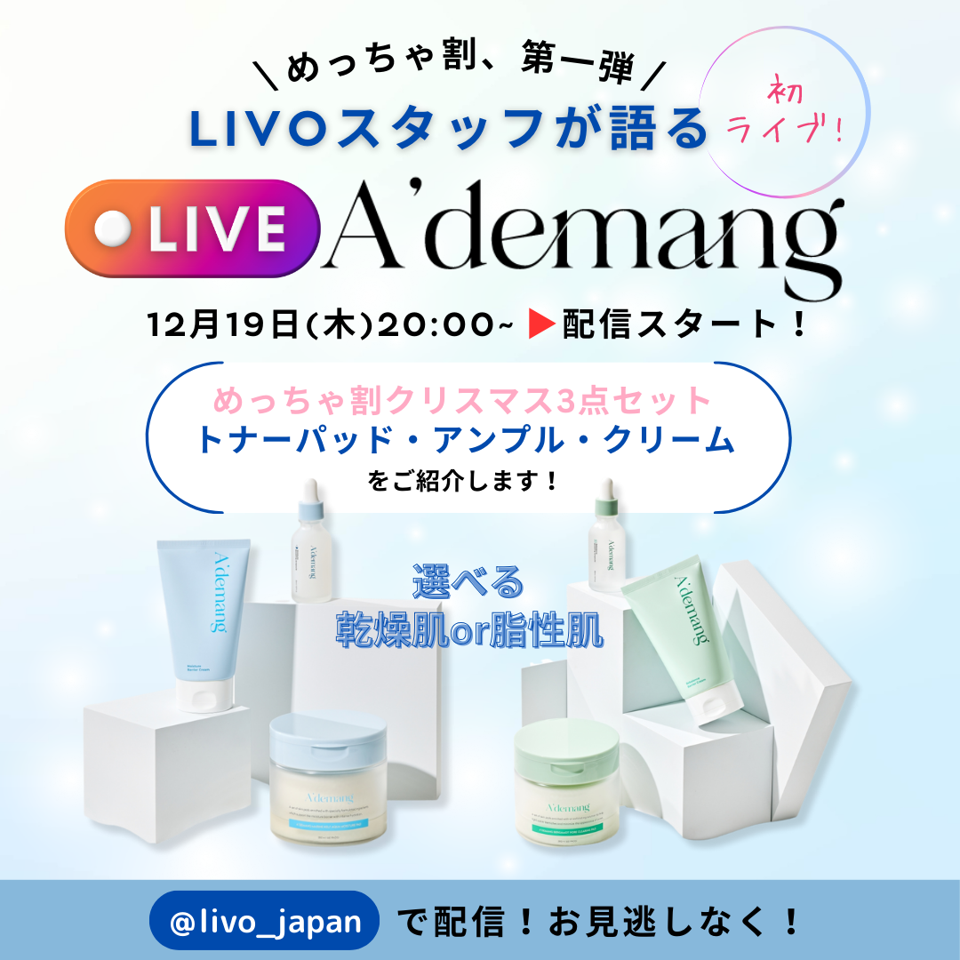 『めっちゃ割』第一弾に伴い、LIVOスタッフが「めっちゃ割」やA'demang商品について語るインスタライブが決定!