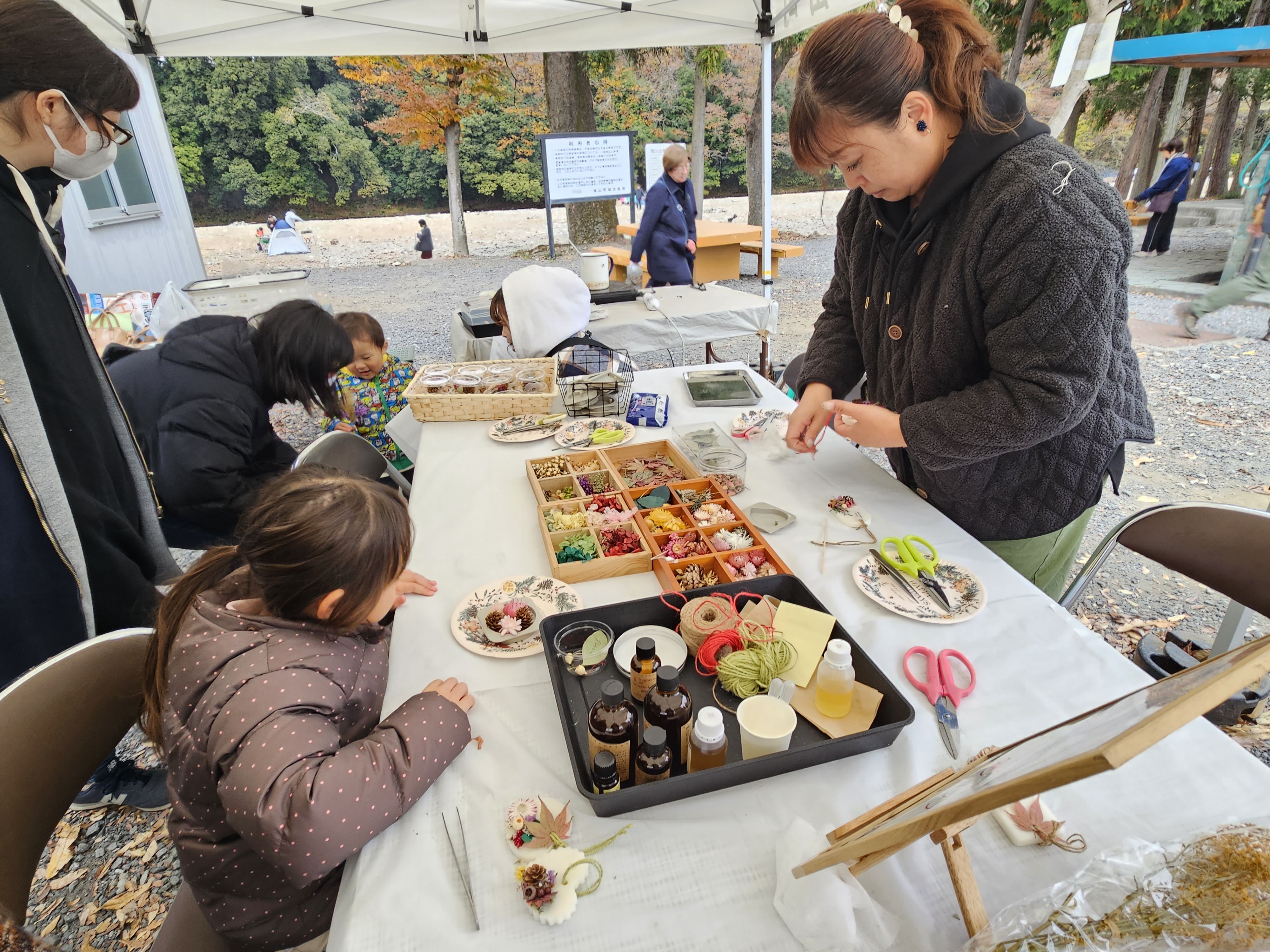 嵐山渓谷バーベキュー場を会場に、11月23日(土・祝)、24日(日)には「イベントDay」を開催します。「ご当地グルめぐり」と題し、嵐山町観光協会員の飲食店出店や、物販の出店、嵐山渓谷のモミジや松ぼっくりを使ったシャーレキャンドルづくりのワークショップを実施します。