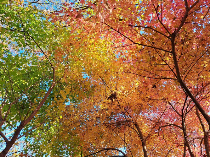 『嵐山渓谷紅葉まつり』は、嵐山渓谷色づき始め~見ごろ期間をお知らせし、「みごろウィーク」は11月16日(土)~12月8日(日)に設定しています。木々が多いため、色づき前の緑や赤、黄色、オレンジなどグラデーションからピーク時には燃えるような紅葉が見られるため、長く楽しむことができます。