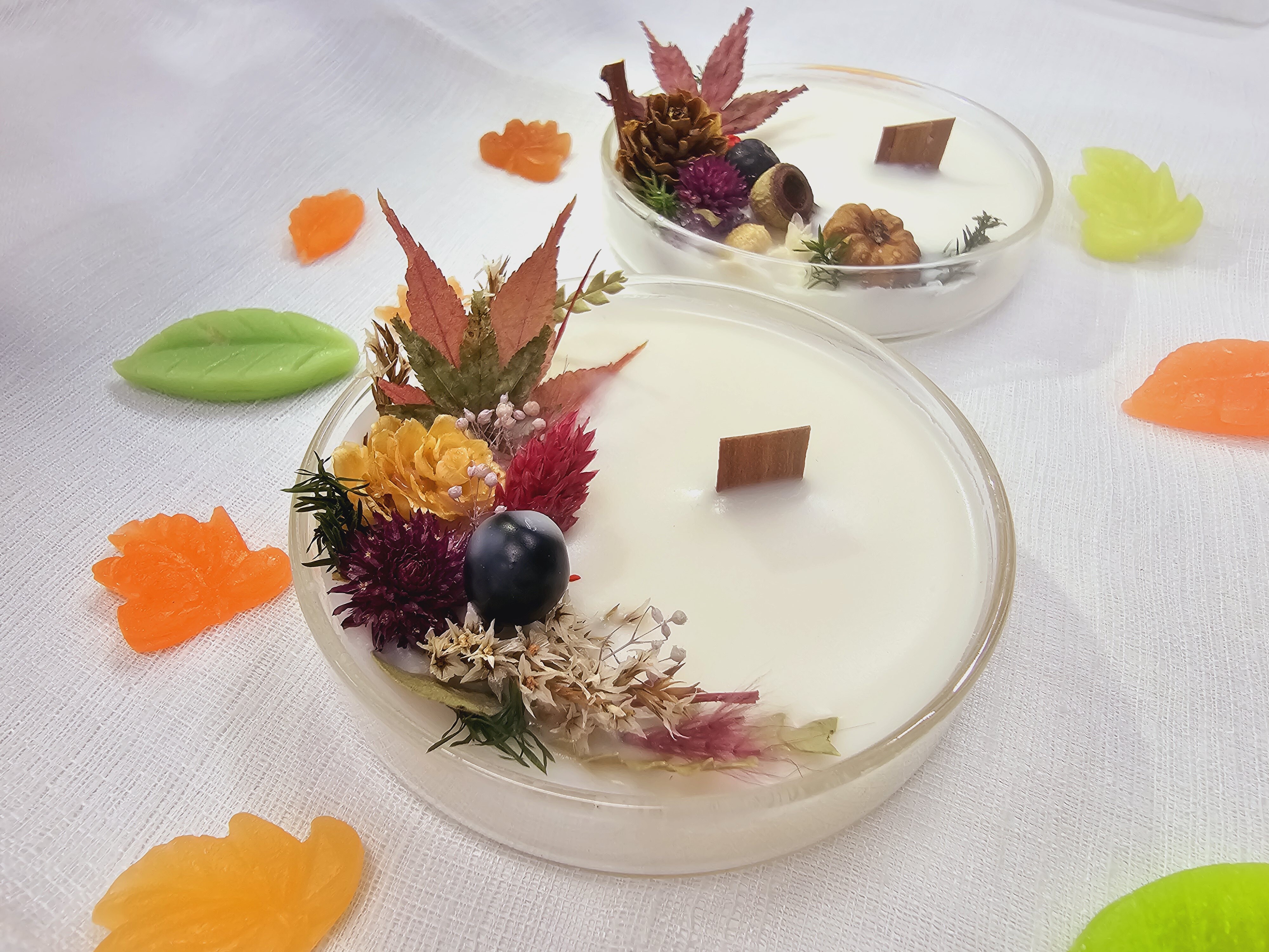 ~モミジや松ぼっくりを使ったシャーレキャンドルづくり~