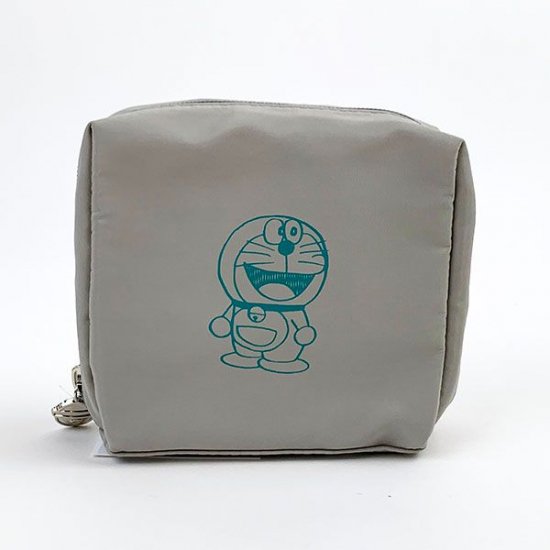 マットな質感が大人っぽさを引き立ててくれるポーチ☆中央にはシンプルなドラえもんイラスト。無駄を省いた可愛さがあります!サイズは13×13×6cm。
