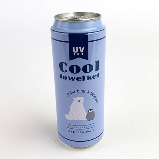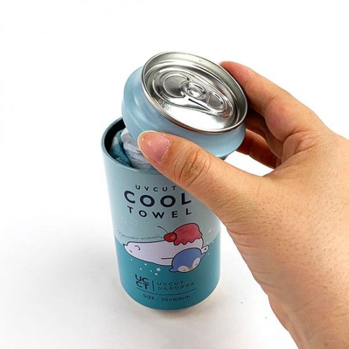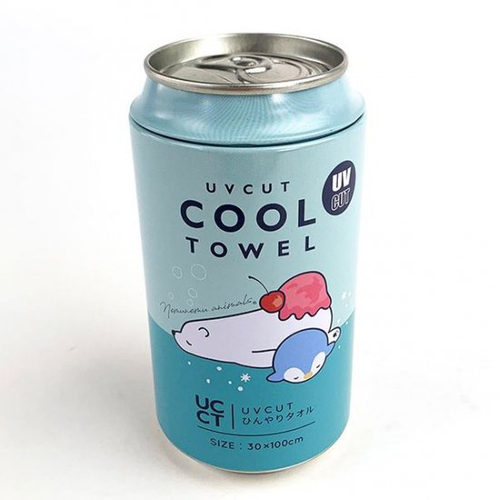 しろくまやペンギのデザインがかわいいクールタオルです。ジュースの缶のように見えますが、この中にそのまま収納できちゃうんです。携帯にも便利そうですよね♪