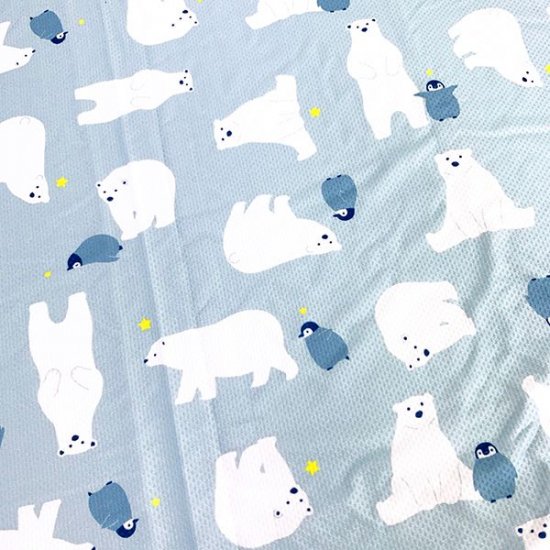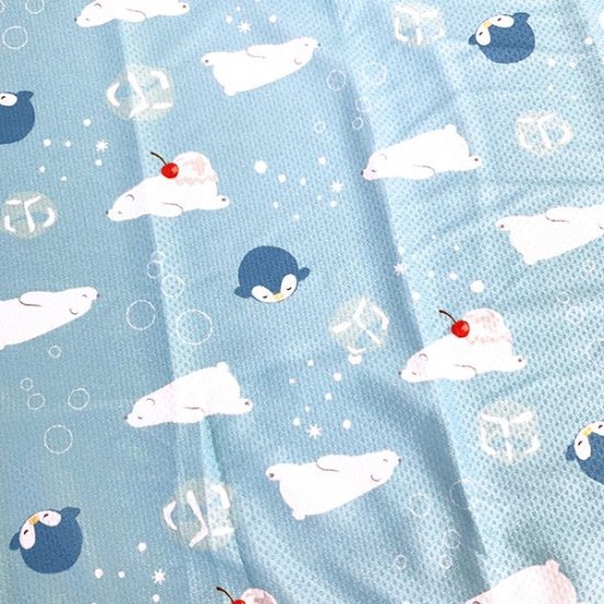 デザインも涼し気なんです♪ライトブルーの生地に、しろくまやペンギンが気持ちよさそうにしているデザインです。