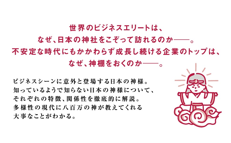 海外のビジネスエリートとの会話が、神様や宗教にかかわる話題にまで広がることも少なくありません。またビジネスシーンでも「日本の神様」や神道などに関する知識が、仕事の仕方、考え方、商談、会食など、様々なシーンで活用されています。