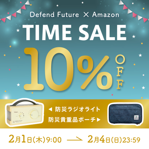シリーズ累計販売個数200,000個突破※、日本発、防災グッズブランド「Defend Future(ディフェンドフューチャー)」(株式会社G.Oホールディングス:大阪府大阪市)は、2月1日〜2月4日の期間中【Amazonタイムセール祭り】にて人気防災グッズを《10%OFF》で販売いたします。