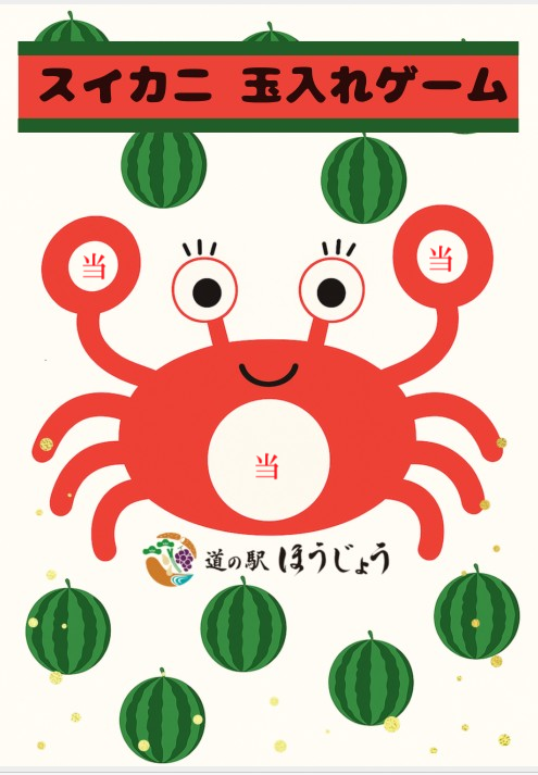 アメリカで人気の「コーンホール」を道の駅ほうじょうにアレンジ!スイカの玉を投げて穴に入れるゲームです。