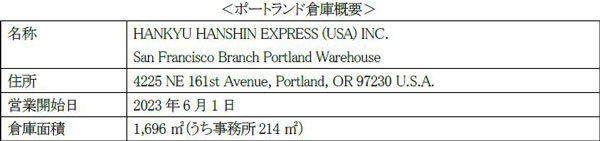 当社米国法人であるHANKYU HANSHIN EXPRESS(USA) INC.サンフランシスコ支店は、オレゴン州における倉庫需要に応えるため、ポートランド国際空港近郊に「ポートランド倉庫」を開設し、6月1日より営業を開始しました。