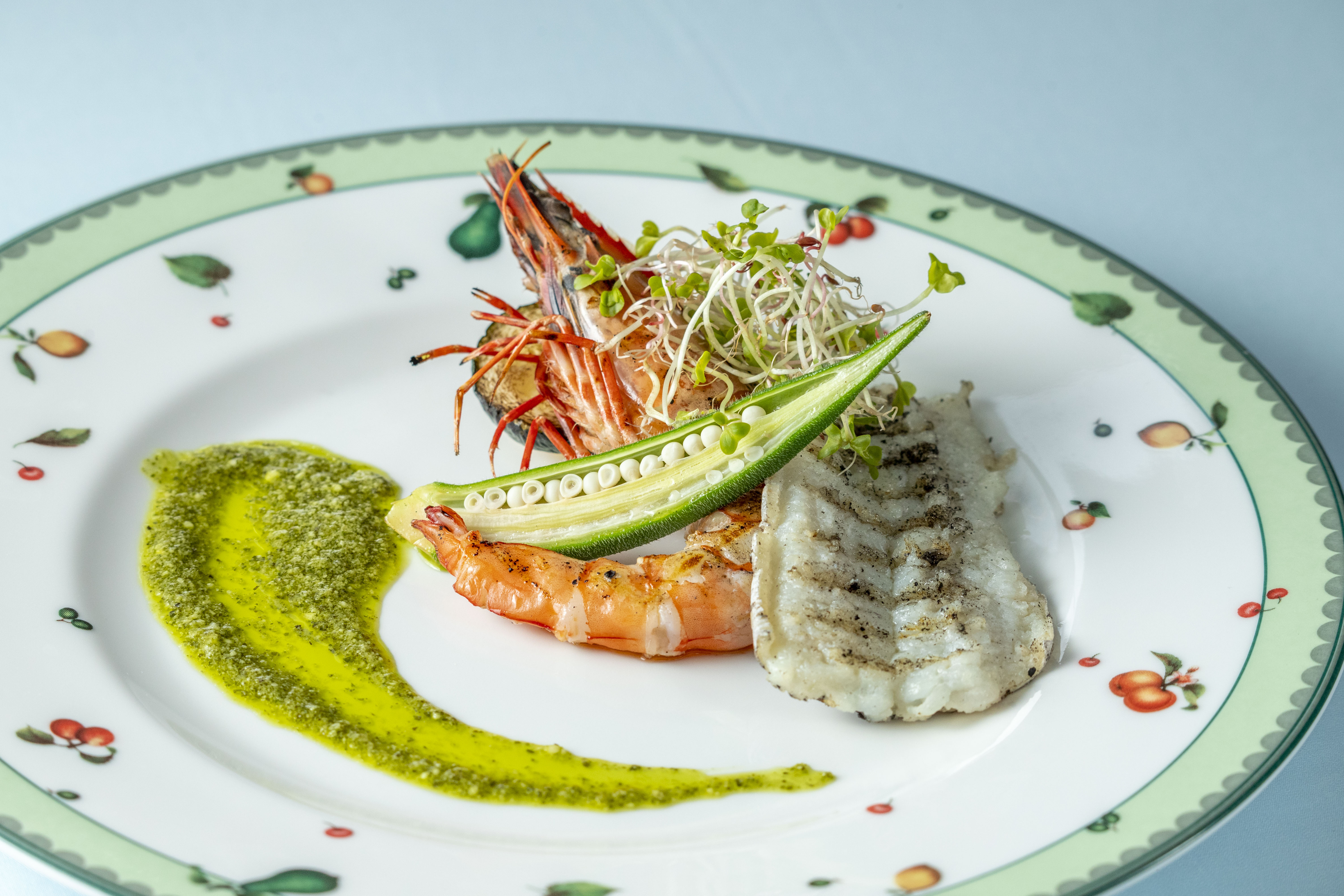 淡路鱧と足赤海老のグリエ サルサベルデ、