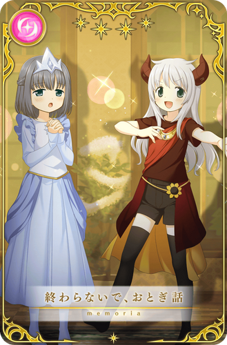 本ガチャでは、魔法少女「梓みふゆ おとぎ話ver.(CV.中原麻衣)」をはじめ、新メモリア「完全なハッピーエンド」やメモリア「終わらないで、おとぎ話」「幼馴染なふたり」が期間限定で登場いたします。