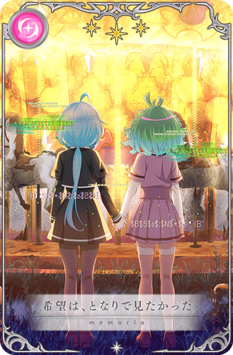 本ガチャより、新魔法少女「ウワサのみこと(CV:本渡楓)」と新メモリア「終わりへの逃避行」「希望は、となりで見たかった」が期間限定で登場いたします。