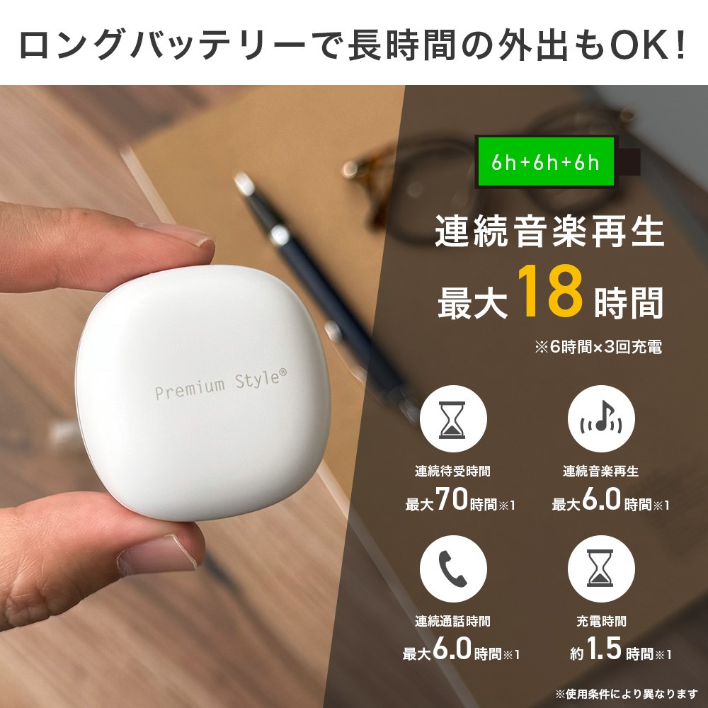 省電力、高速通信のBluetooth® 5.3を搭載しています。イヤホン本体は簡単に着脱でき、密着する違和感や長時間での疲労感を感じにくいインナーイヤータイプです。