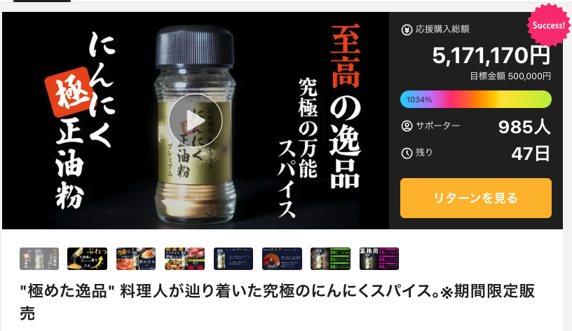 発売2週間で支援総額500万円突破 「二度香る」新スパイス「極ニンニク正油粉」がMakuakeで話題