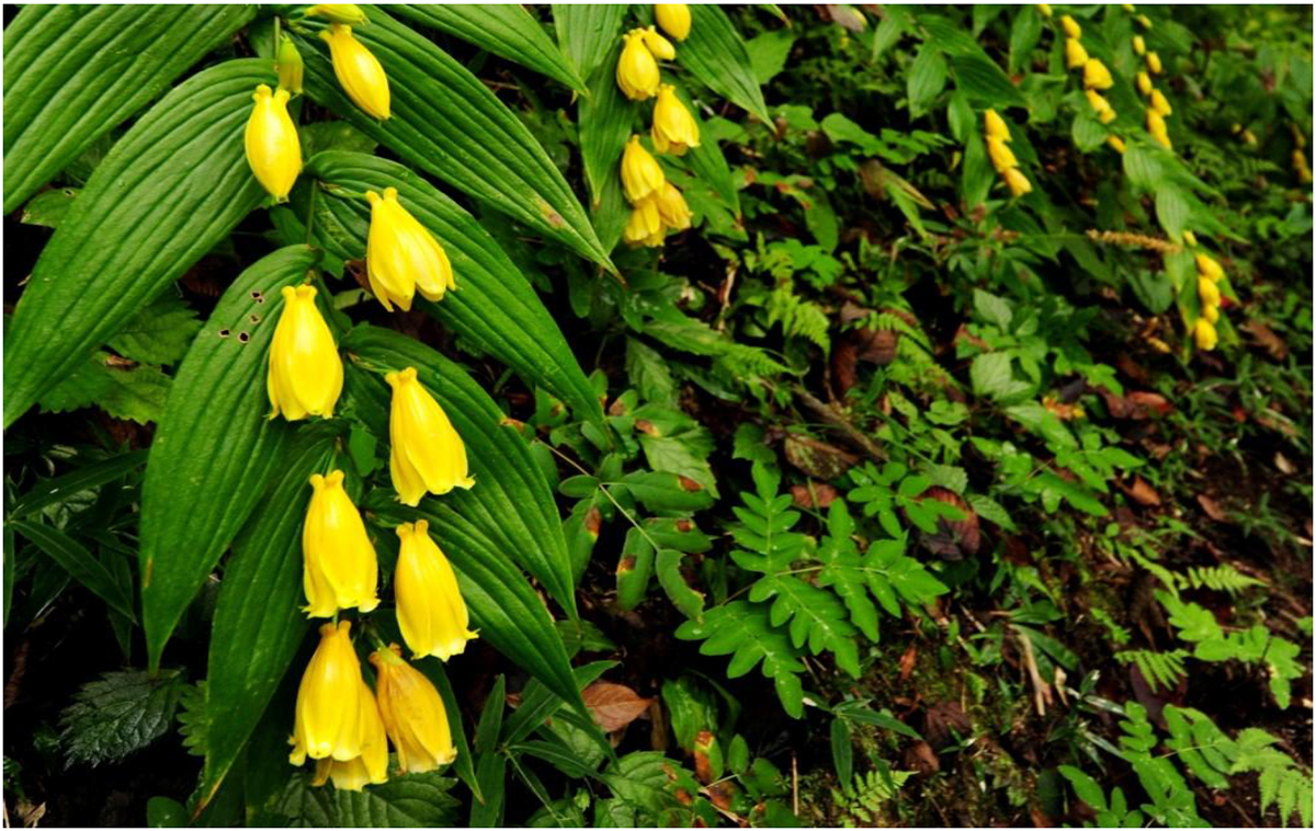 和歌山県の紀伊半島南部にのみ自生するホトトギスの仲間で、絶滅危惧ll類に分類される希少な植物です。黄色い花をすずなりに咲かせる姿は大変美しく、その姿を平安時代の貴婦人「上臈(じょうろう)」に見立てて名付けられました。カメラマンをはじめとした多くの方から人気の秋の花です。