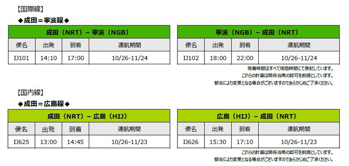 JALグループのLCCであるスプリング・ジャパン株式会社(以下:スプリング・ジャパン)は、2025年度冬ダイヤの成田=寧波線および広島線の運航を決定し、本日15時より販売を開始します。最新のダイヤにつきましては、スプリング・ジャパン公式サイトをご確認ください。