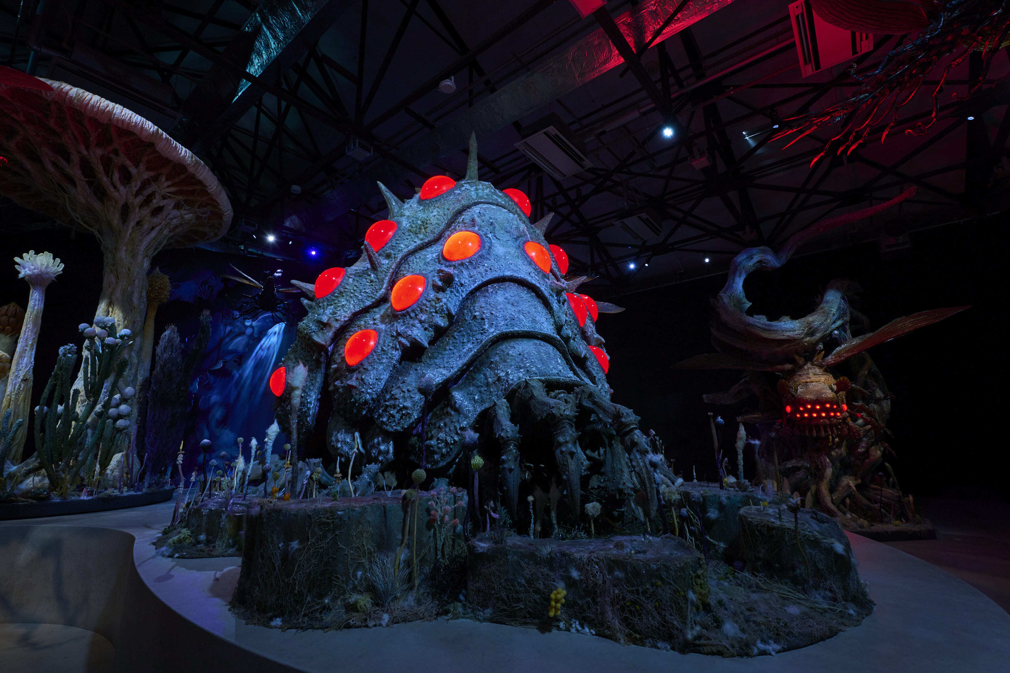 本展では稀代の造形作家として国内外・世界に多くのファンを持つ竹谷隆之さんらが作成した造形物をもとに、映画に登場する“腐海”の空間を表現した空間が登場!圧巻のクオリティーで作られた王蟲、大王ヤンマ、ムシゴヤシなどが待つ空間は、来場者を魅了することでしょう。
