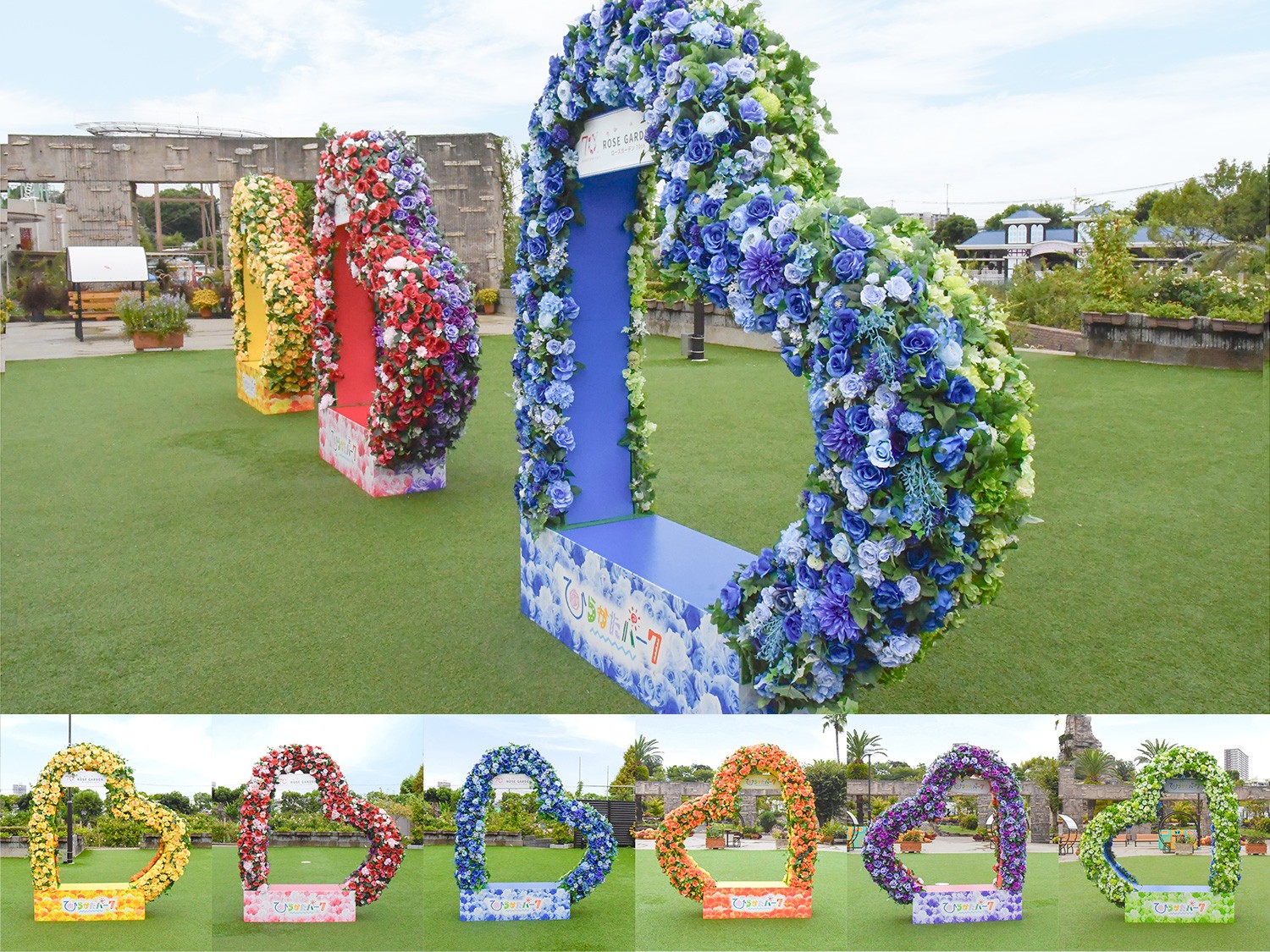 人気の「バタフライ」「ハートのベンチ」のほか、ローズフェスティバル期間限定のスペシャルフォトスポットをご用意しています。バラのフェイクフラワーを使用した「フラワードール」や色とりどりのバラが水面に広がる「フローティングローズ」は必見です。