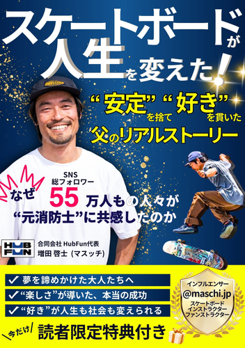 【速報】元消防士が“安定”を捨て“好き”を貫いたリアルストーリー 電子書籍『スケートボードが人生を変えた!』が発売初日にAmazonベストセラーを獲得!