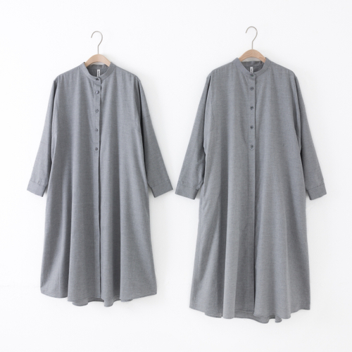 ほこっと心落ち着くチャコールカラーに黒の貝ボタンを施し、やさしく落ち着いた色と艶に気持ちがそっとほどけていくような一着。