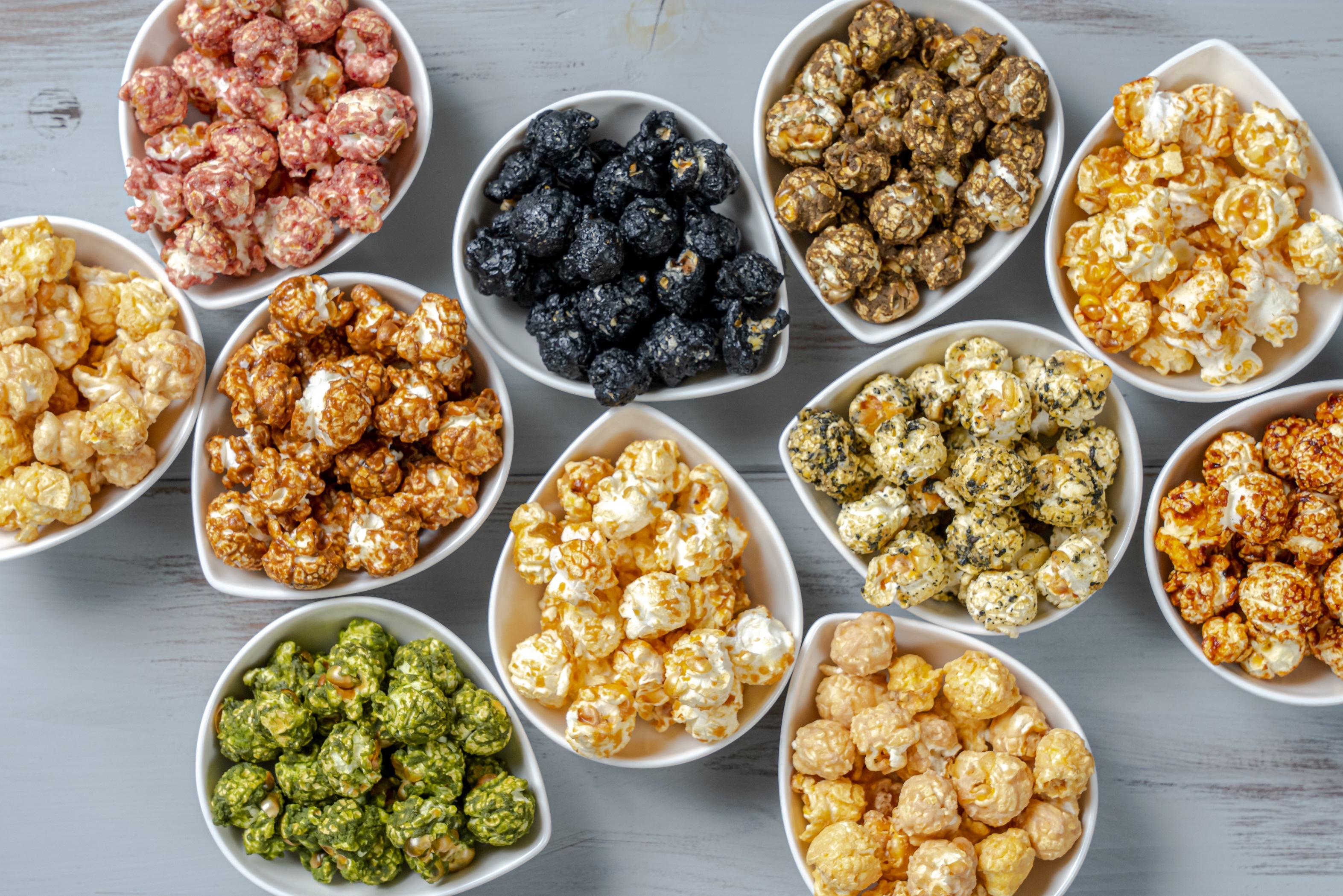 OKAWARI POPCORNの20種類以上あるポップコーンと稲田本店さんのお酒を、何パターンも食べ合わせし、最適なペアリングを見つけました。