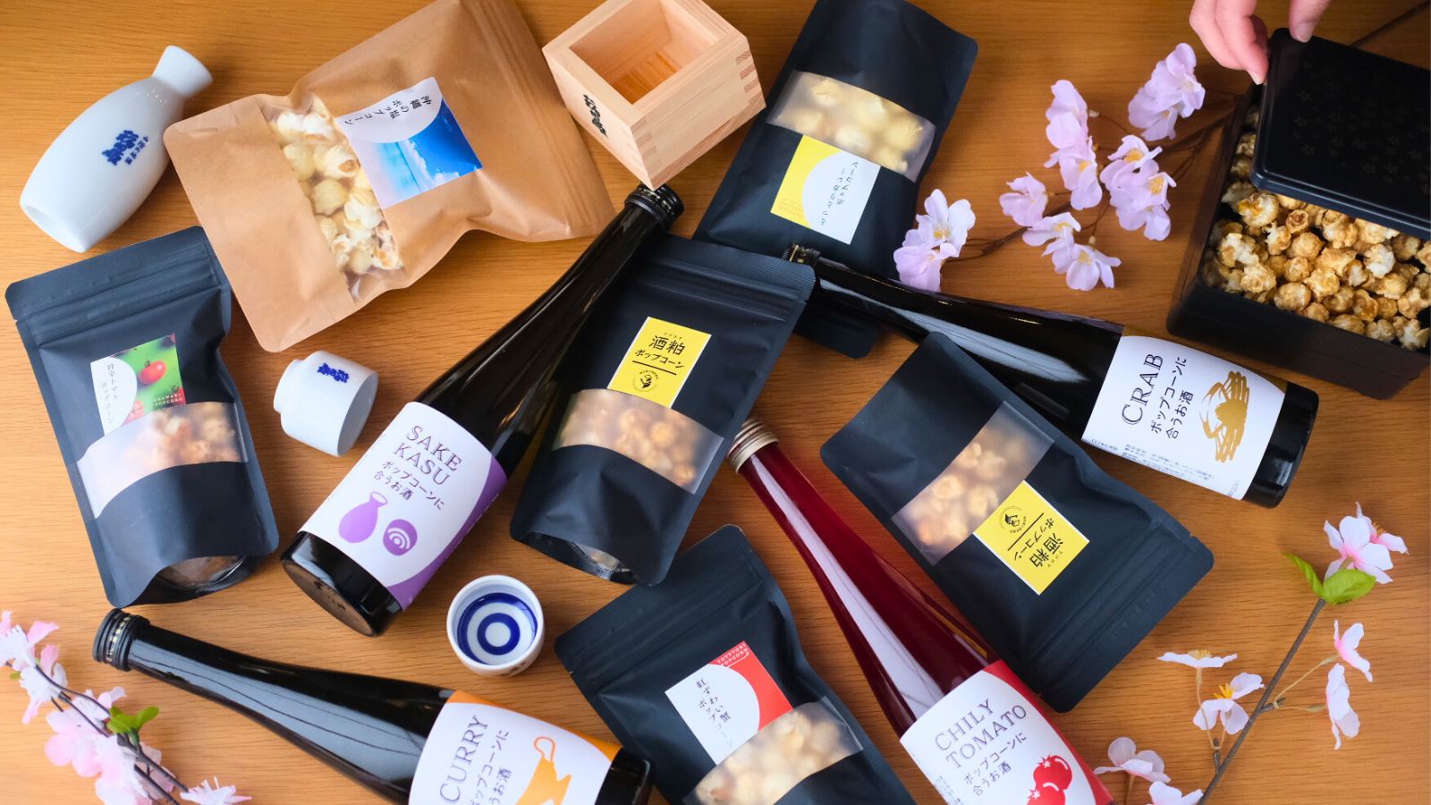 14,000円(税込):ポップコーン10袋と日本酒500ml4本
