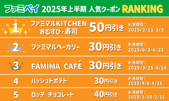 ファミペイ2025年上半期人気クーポンランキング