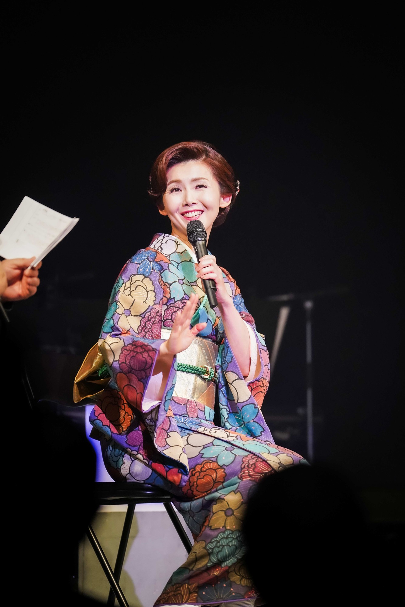 定刻通りに幕を開けた第1部は、新曲発表ライブ。艶やかな着物姿の小桜が登場すると、客席からは割れんばかりの拍手が送られた。この日、初披露となった待望の新曲は、小桜の新たな魅力を引き出す意欲作。その歌詞の世界を丁寧に、そして力強く歌い上げる姿に、観客は静かに聴き入っていた。また、作詞家の冬弓ちひろ、そして作曲を手掛け、最近では小桜のボイストレーナーも務めるシンガーソングライターの向井浩二が登壇し、貴重な制作秘話を披露する場面も見られた。