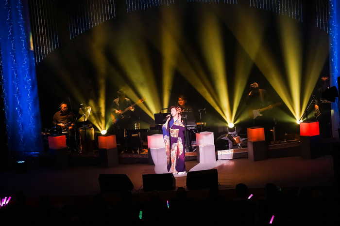 続く第2部は、雰囲気を一変させた小桜舞子コンサート。今回はバックバンドに「向井浩二 & COS tonic」を迎えた豪華な構成だ。生演奏ならではのグルーヴ感とドラマチックなアレンジが、小桜の透明感あふれる歌声をより一層際立たせた。