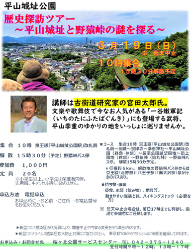歴史探訪ツアー「平山城址と野猿峠の謎を探る」