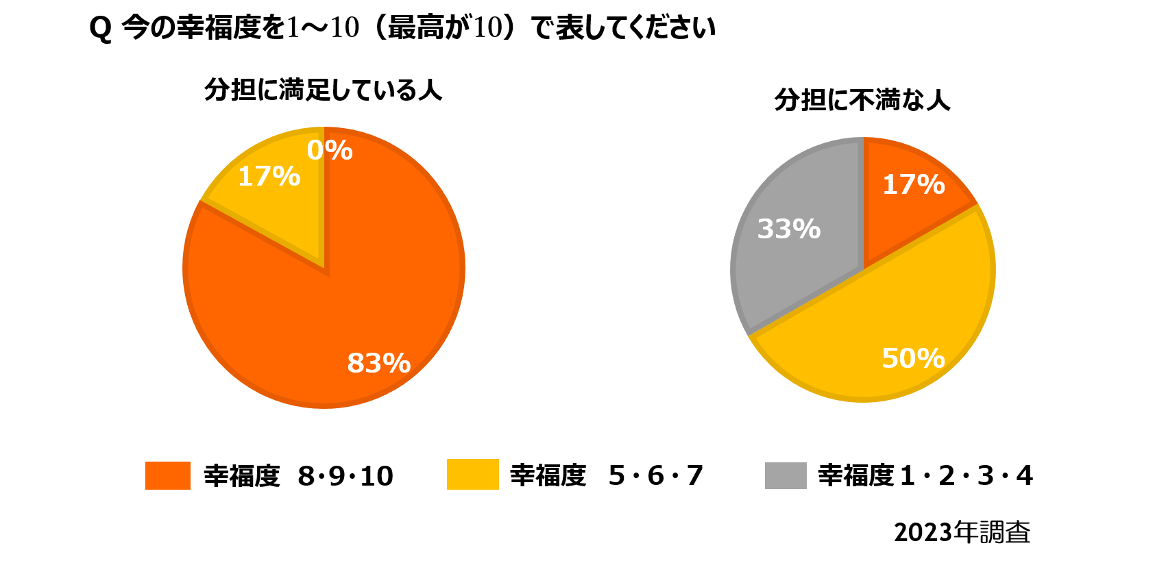 家事と育児の分担の満足度が夫婦仲や幸福度に直結
