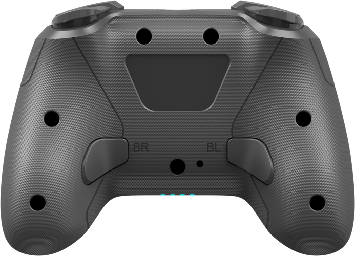 背面に2つの拡張ボタンを搭載。各種ボタンを割り当てられ、Lスティックボタンを割り当ててFPSで走りやすくしたり、アクションゲームなどで攻撃ボタンを割り当てて溜め撃ちをしやすくしたりなど、さまざまな用途に活用できます。また、便利な連射機能(秒間約20連射)も搭載しています。