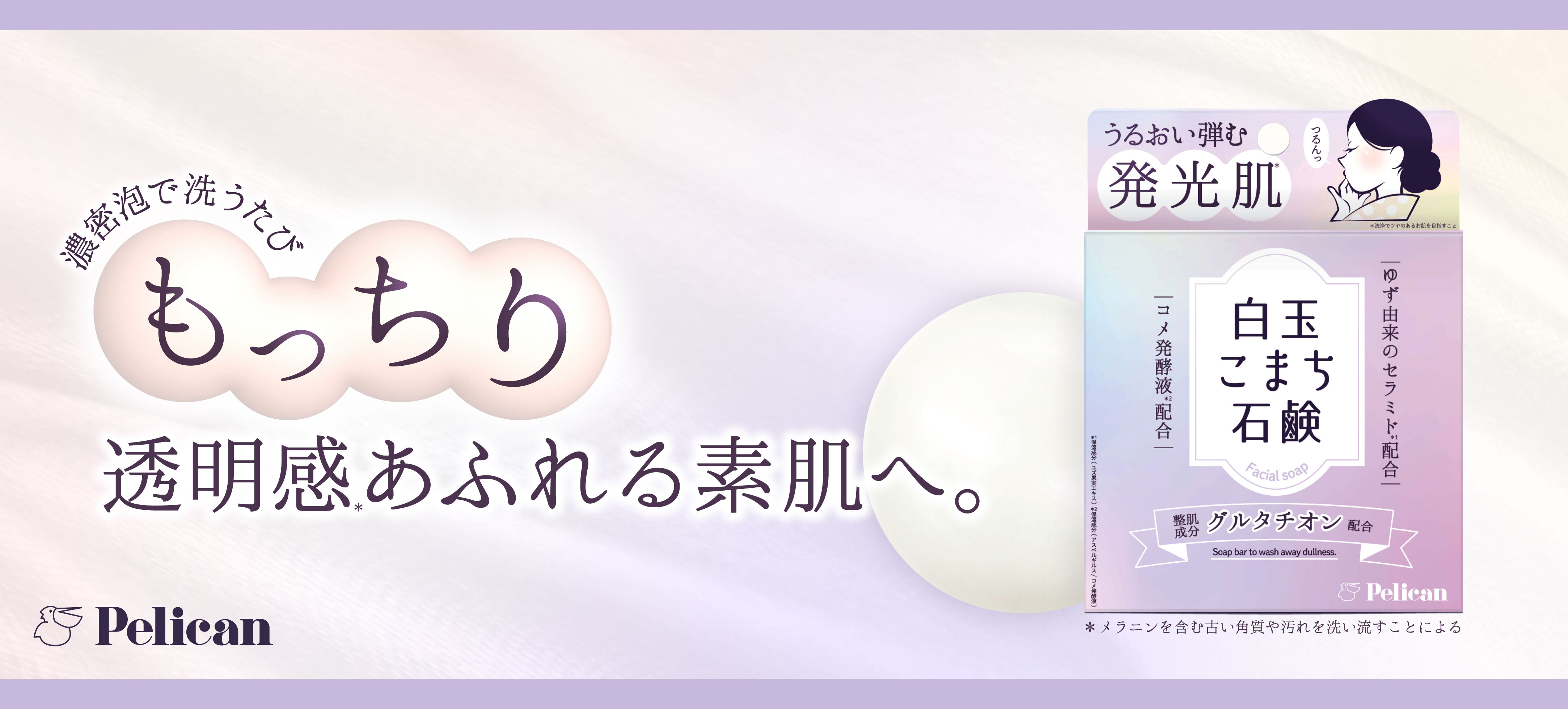 株式会社ペリカン石鹸(本社:東京都港区/代表取締役社長:渋井 伸和)は、「白玉点滴」で話題の整肌成分「グルタチオン」を配合した洗顔石けんを2024年10月1日(火)にリリースしました。毎日の洗顔で、まるで白玉のような透明感(*1)あふれるもっちりとしたお肌へと導いてくれる石けんをお届けします。