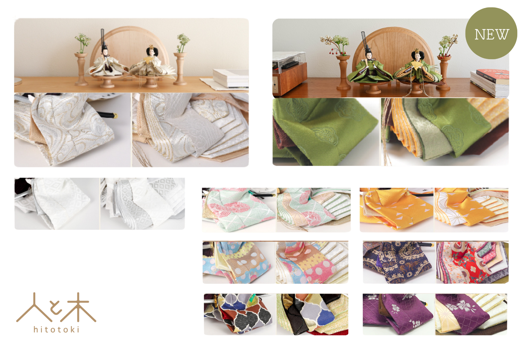雛人形衣装 : 白金、白銀、鳳凰、山吹、桜凛、小紫、ゴブラン、モロッカン、オリーブ
