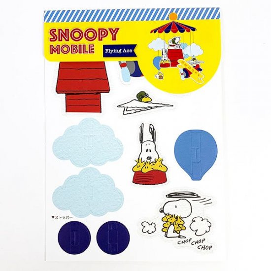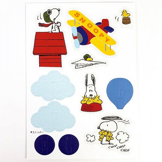 シートにはスヌーピーやウッドストックの、かわいいデザインが型抜きされています。飛行機もあり、楽しそう♪