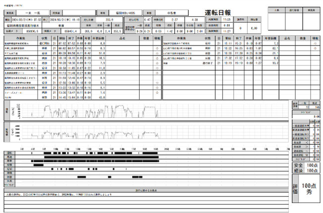だれが、いつ、どのくらい、時間を超過したのか、違反箇所はどの運行なのかが一目でビジュアル的に視覚化することができ、待機・荷積・付帯作業のデータを一気に抜きだし、荷主との交渉、改善策に役立てることが可能となります。