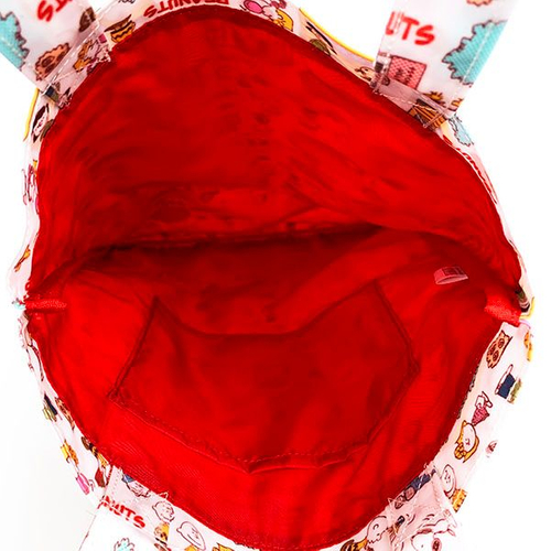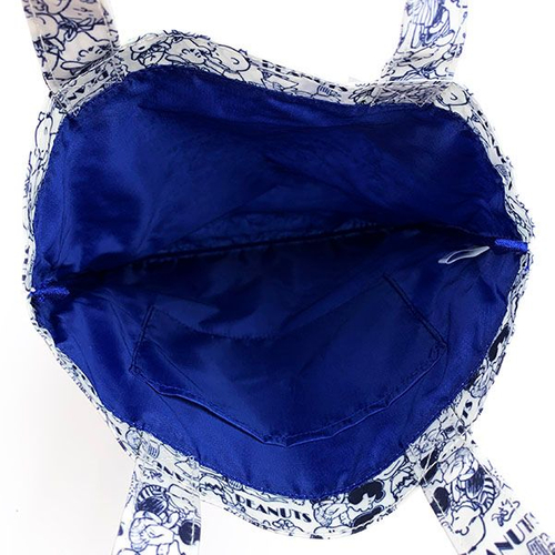 デザイン違いはこちら、ブルー系のシックなデザインです。スヌーピーや仲間たちがところ狭しと並んでいますね。通勤や通学のサブバッグにも使えそうです。
