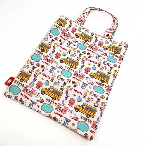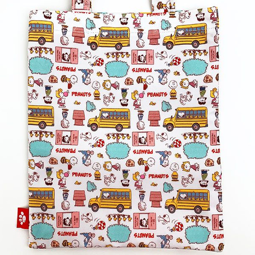 スヌーピーフレンズがたくさん描かれている、楽しいデザインのトートーバッグです。スクールバスもデザインされていて、ポップなカラーもかわいいですよね。サイズは36.5×29cmなので、容量も十分ですね。フラットなので、使いやすいですよ。