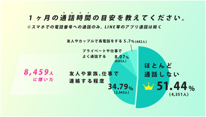 なお、当アンケートの通話時間とはスマホでの電話番号への通話のみを指し、LINE等のアプリ通話は除外しています。