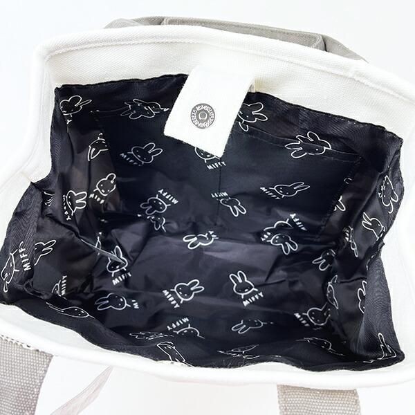 内側の生地にもミッフィーがデザインされていて、ミッフィー好きな方には嬉しいポイントです。底がしっかりしているためスープジャーや水筒も入れられますし、弁当の中身を崩さずに持ち運べますよ。
