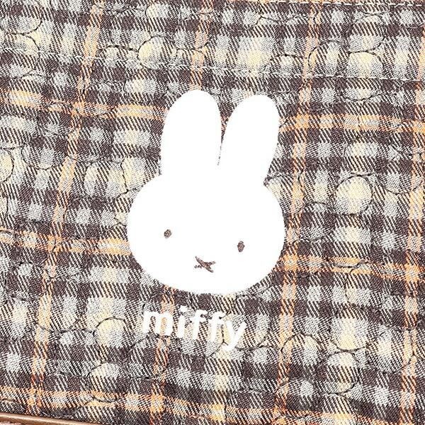 見慣れたミッフィーの顔とブラウンがベースの落ち着いた大人っぽい雰囲気のチェック柄、お花柄のキルティング柄が魅力です。