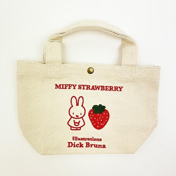 ミッフィーとイチゴの刺繍が鮮やかなランチトート