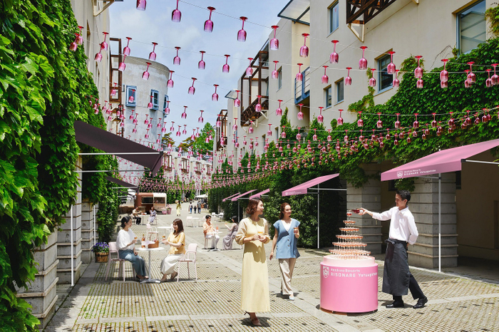 自然豊かな八ヶ岳エリアのリゾートホテル「星野リゾート リゾナーレ八ヶ岳」では、2023年3月11日~4月23日の間、春らしく華やかな街並みでワインを楽しむ「八ヶ岳ロゼタウン2023」を開催します。メインストリート「ピーマン通り」はロゼ色のワイングラスで彩られ、春らしく華やかで、気持ちが高まる空間です。また新登場の「ロゼスパークリングタワー」では、ワインを振舞います。さらに、ロゼワインと相性の良いスイーツもあるので、ワインリゾートが春におすすめするワインの楽しみ方を存分に堪能できるイベントです。