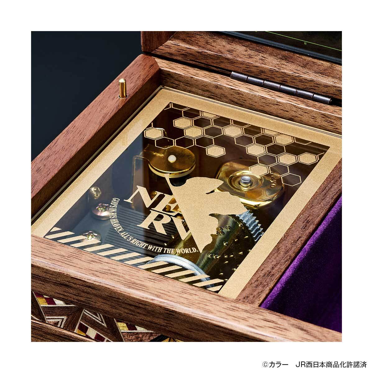 物語の舞台「第3新東京市」のモデルとなった箱根より、伝統的工芸品・箱根寄木細工のオルゴールが登場しました。