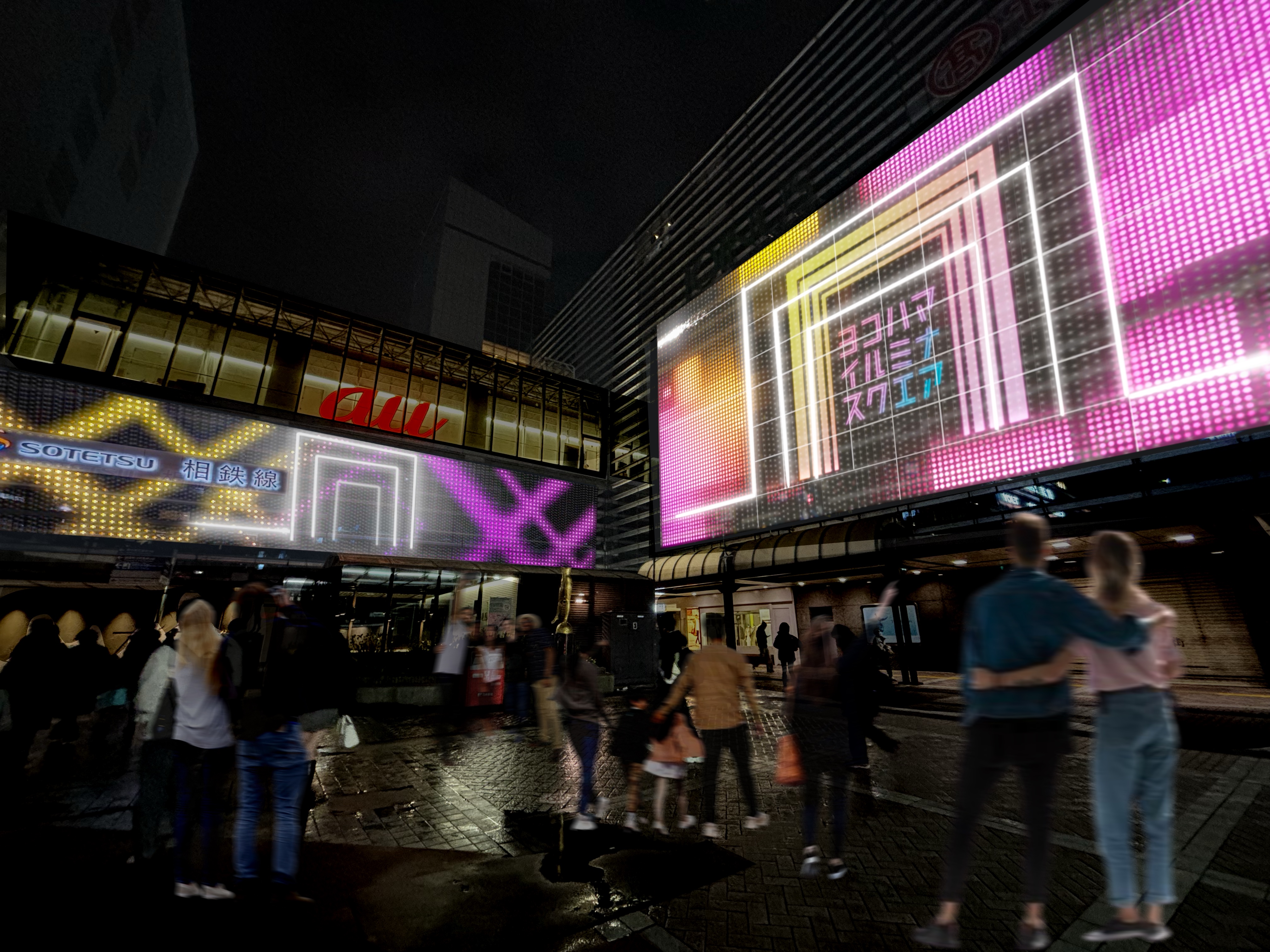 横浜タカシマヤ壁面・相鉄ジョイナス壁面、モアーズ壁面では、大型のスクエアをモチーフにしたイルミネーションを展開します。