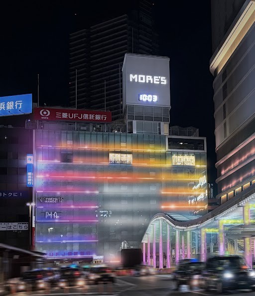 ○横浜駅中央西口駅前広場/横浜タカシマヤ壁面、相鉄ジョイナス 壁面、横浜モアーズ壁面、横浜駅西口警備派出所(西口交番)、横浜駅中央西口駅前広場大屋根