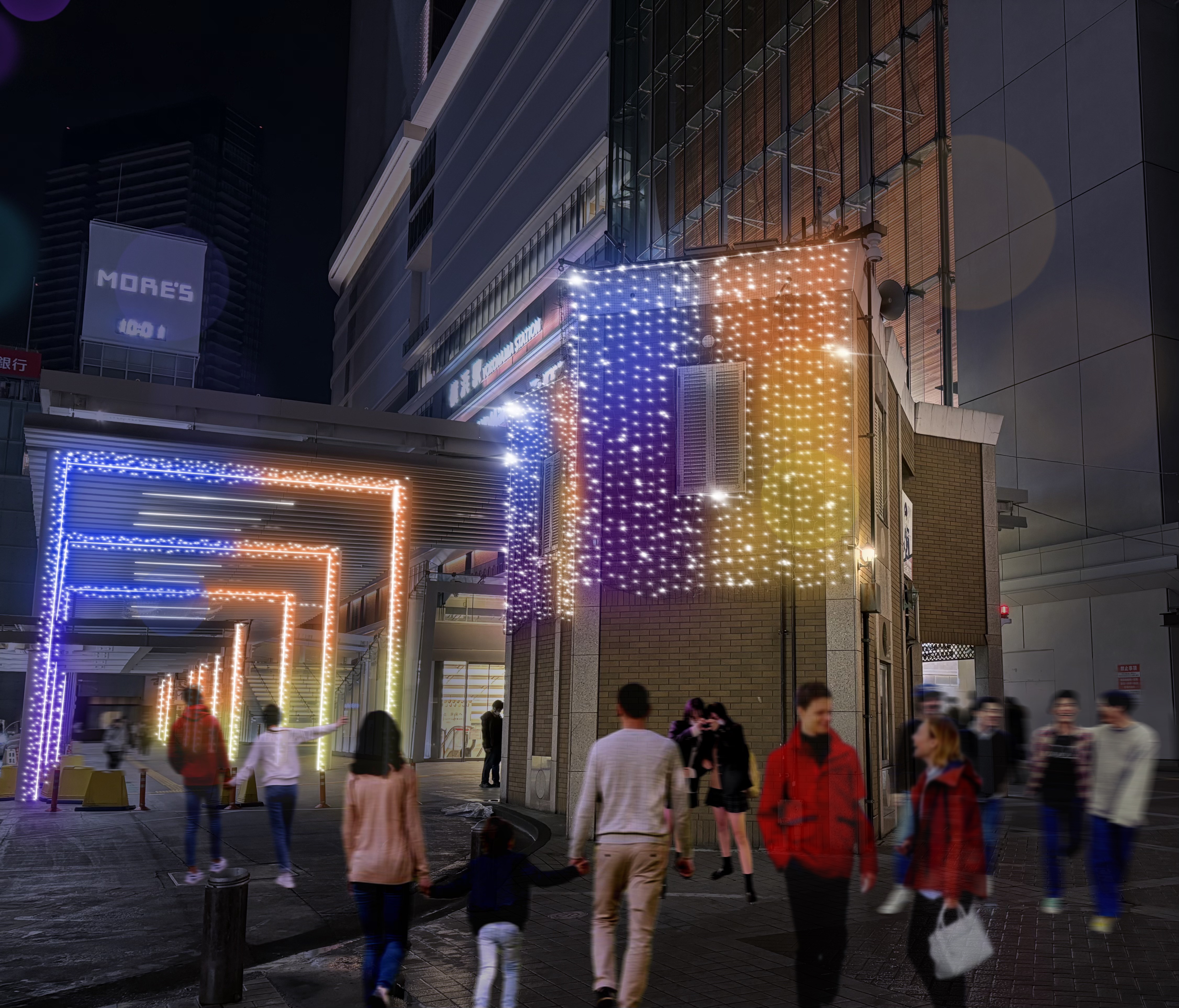 横浜駅西口周辺で「まち」と「ヒト」をつなぐスクエア型のイルミネーションが点灯