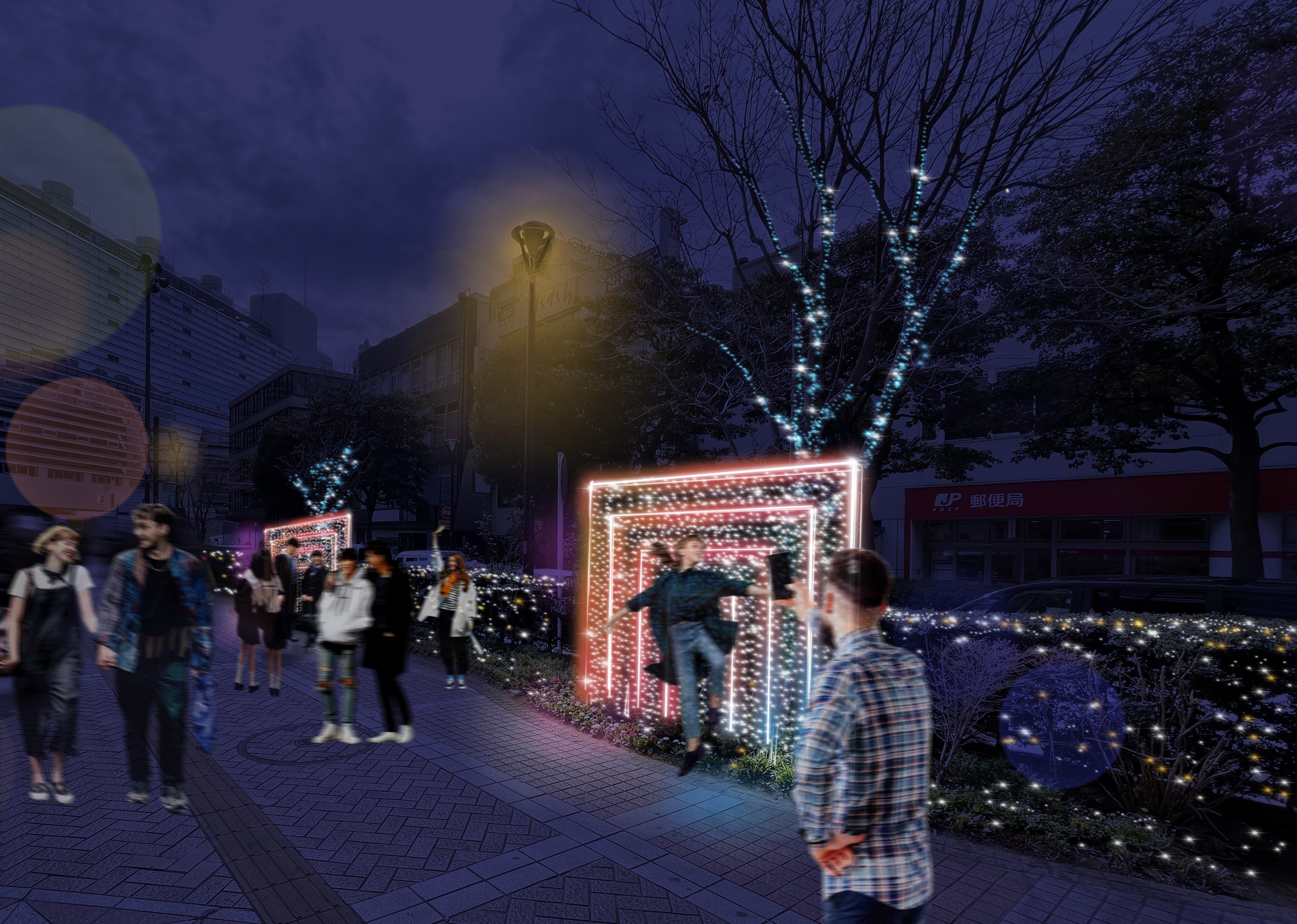 高木や植栽に掛かる電飾に加え、ゲートモチーフのフォトスポットを設置します。ゲートのデザインが横浜駅西口エリアをつなぐモチーフとなります。