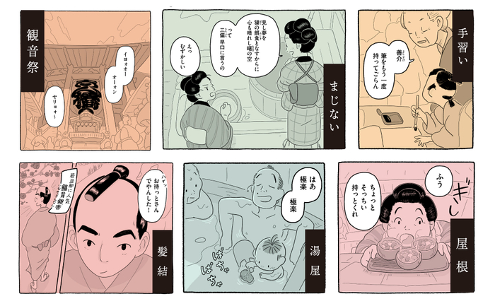 東京都出身。漫画、イラストレーション、アニメーションなどを手がけるクリエイター。漫画や絵本、書籍の装画、アニメーションステッカー、キャラクターデザインの他、オリジナル作品も多数。絵本『Magic Ramen』(Little Bee Books刊)が「Junior Library Guid」「CSMCL Best Books of 2019」「Freeman Book Awards Children’s Literature 2019」などを受賞。Google、Appleなど海外の仕事も多く手がけている。著書に『まめで四角でやわらかで』『ぽんこさんの暮らしのはてな?』『日月十譚』(共著)など。現在はトーチwebで『まめで四角でやわらかで』を連載中。江戸っ子だった祖父母から昔の様子などを聞いて育つ。
