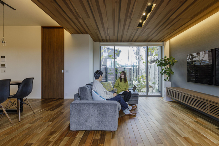 また、洗面室と浴室を2階にもってきたことで、1階に広いリビングスペースを確保することが可能に。さらに、1階は来客向けのスペース、2階はプライベートな空間とメリハリをつけることができました。
