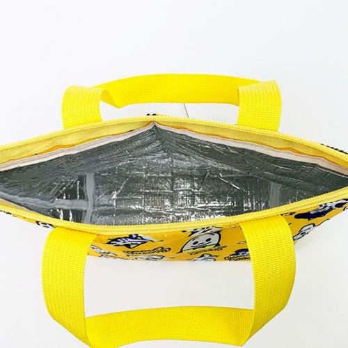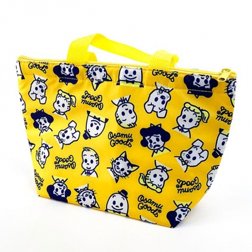 オサムグッズのキャラクターが勢ぞろい!元気なイエローの総柄がポップなランチバッグもおすすめです。