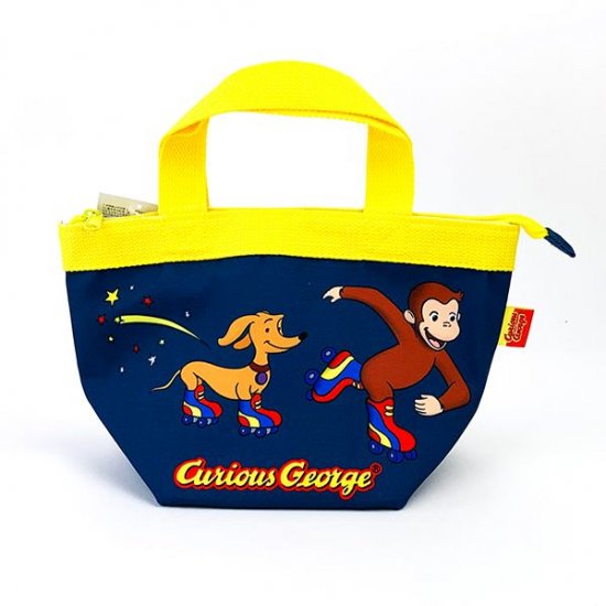 ジョージとハンドリーが楽しそうに遊んでいるデザインのランチバッグもございます。お好きな方をお選びください♪サイズは19cm×29cmです。